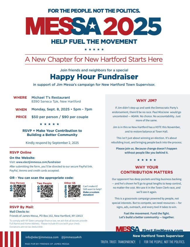 RSVP Here by Tuesday, Sept. 2: https://electjimmessa.com/fundraiser